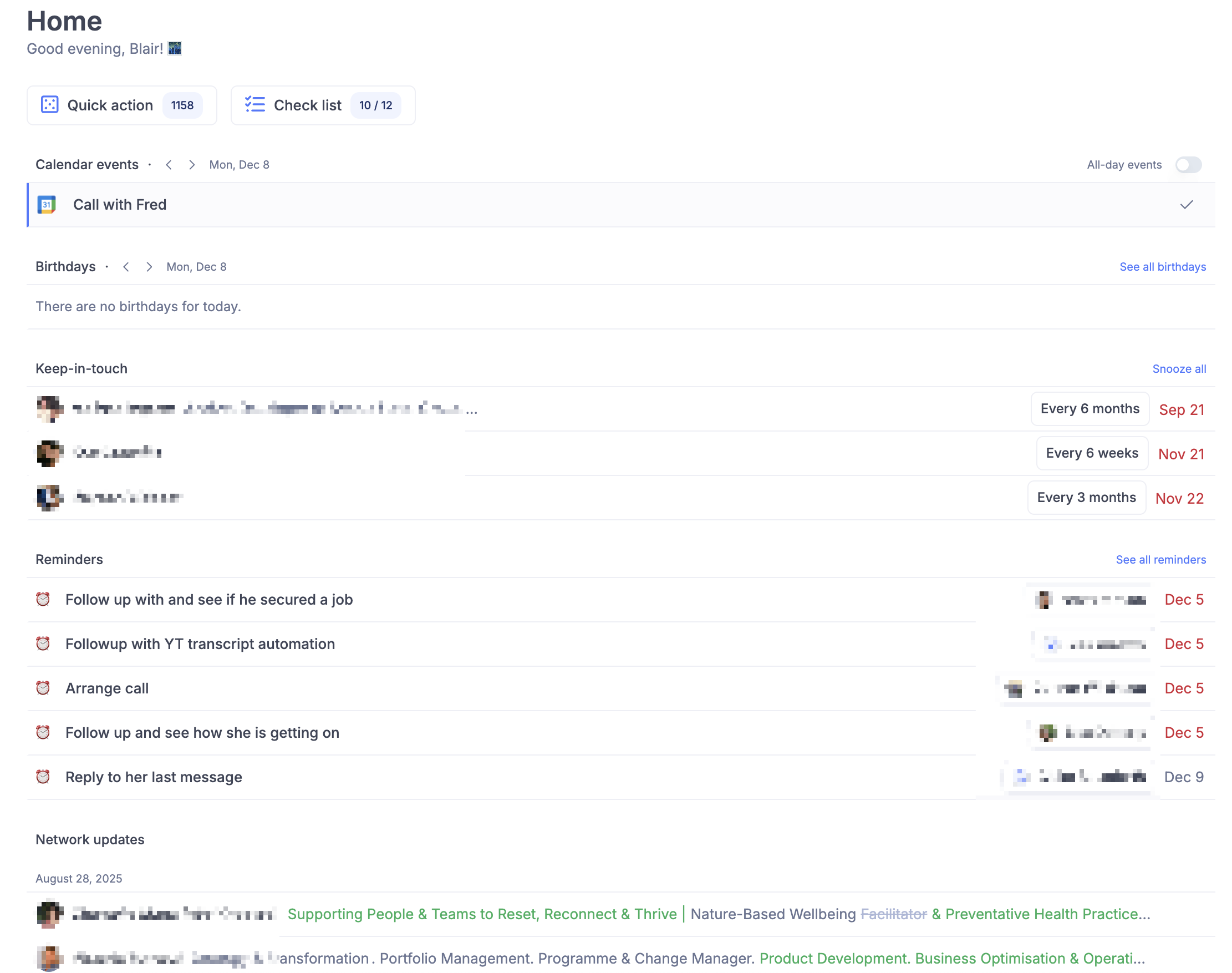 The rest I keep as natural as possible. After all, it's about building real human connections. A simple hey, checking in or offering some help. Sometimes I’ll jump on a Zoom call with friends or past colleagues.