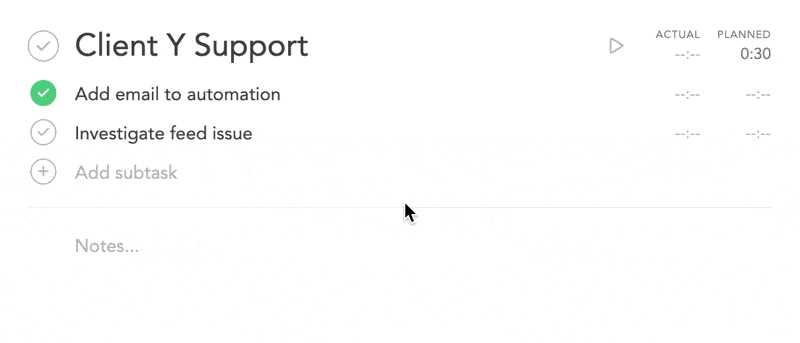 That way, I have one nice and tidy task in Sunsama, and a list of subtasks to tackle. I can then sit down and get to work in a focused support session.